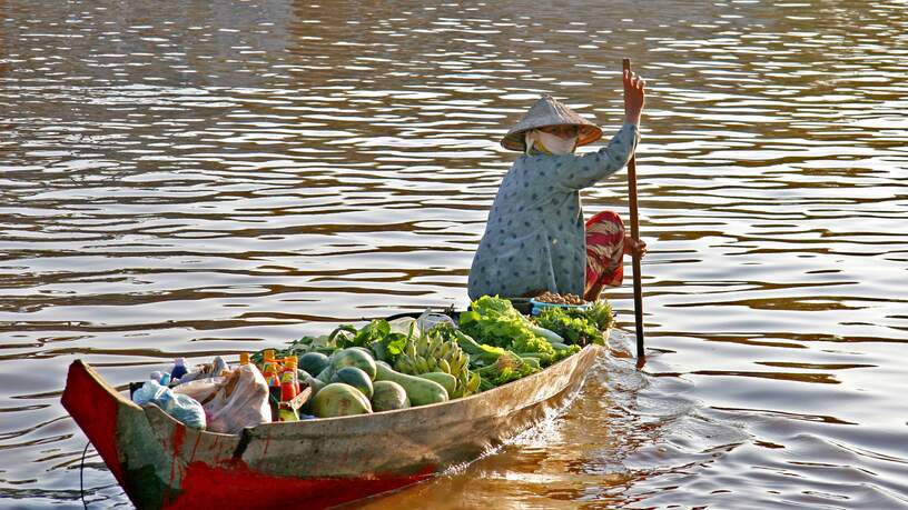 Je bezoekt de drijvende markt van Cai Rang, de grootste in de Mekongdelta. Je vaart tussen de lokale boten, die drijvende marktkramen zijn vol met fruit en groenten. Rond 10:00 uur eindigt de boottocht bij Cantho en daar wacht de auto die je terugbrengt naar Ho Chi Minh-stad.